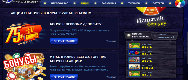 Опытные гемблеры ценят бонусы, которые предлагают онлайн-казино как дополнительный шанс на выигрыш. В «Вулкан Platinum» можно воспользоваться следующими бонусными предложениями: